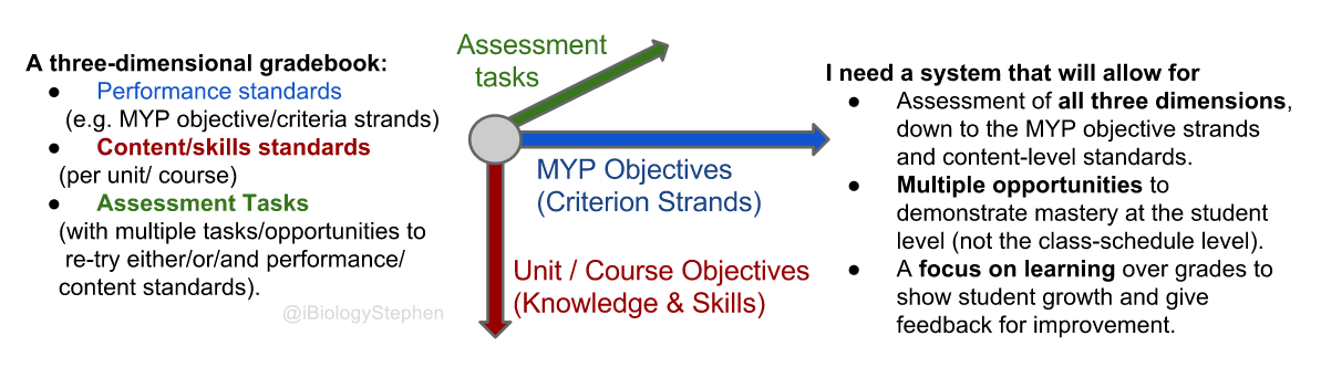I would really like a standards-based, MYP-aligned, content-customisable gradebook and feedback system that is effective in at least three dimensions: