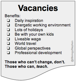 Cue relief from face-booking teacher friends and ‘funny’ comments from non-teaching others. They used to bug me, but not any more; we have a lot to be thankful for.
