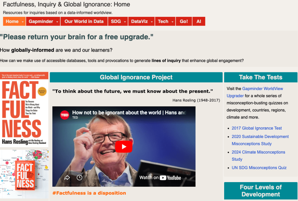 Anyone who follows me on Twitter will know how much I love Factfulness by Hans Rosling & family. I have a LibGuide full of connected resources for the global ignorance project and data-informed inquiry here. I presented it recently at ACAMIS Tech 2018, and will run an extended session at Learning 2.019 in Nanjing in November.
