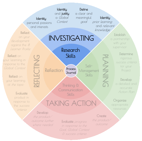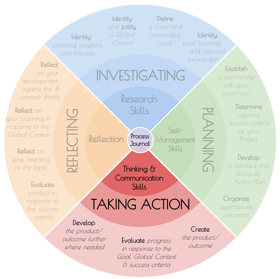 To add to the Cycle Diagram frenzy of my last few months, here’s one for the Personal Project. Although the MYP Projects Guide has one that covers the Community and Personal Projects combined, I wanted to make one to focus on PP alone, and which could be used as a process guide for the Project.