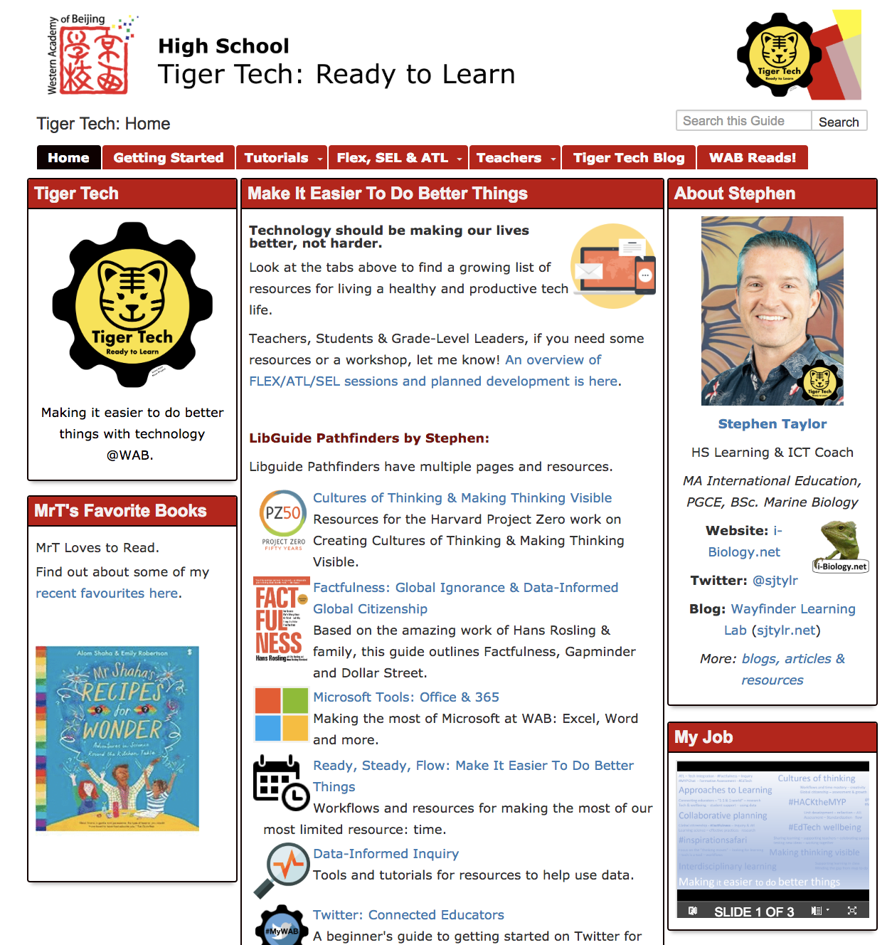 Inspired by Nadine & Jeri, the teacher-librarians here at WAB, I’ve really got into LibGuides. It’s huge, amazing and (I think) pretty pricey, though as I’ve been getting settled here I’ve been building my own TigerTech group and resources on there to support teaching and learning. It can embed almost anything and with a little tinkering can look pretty cool.