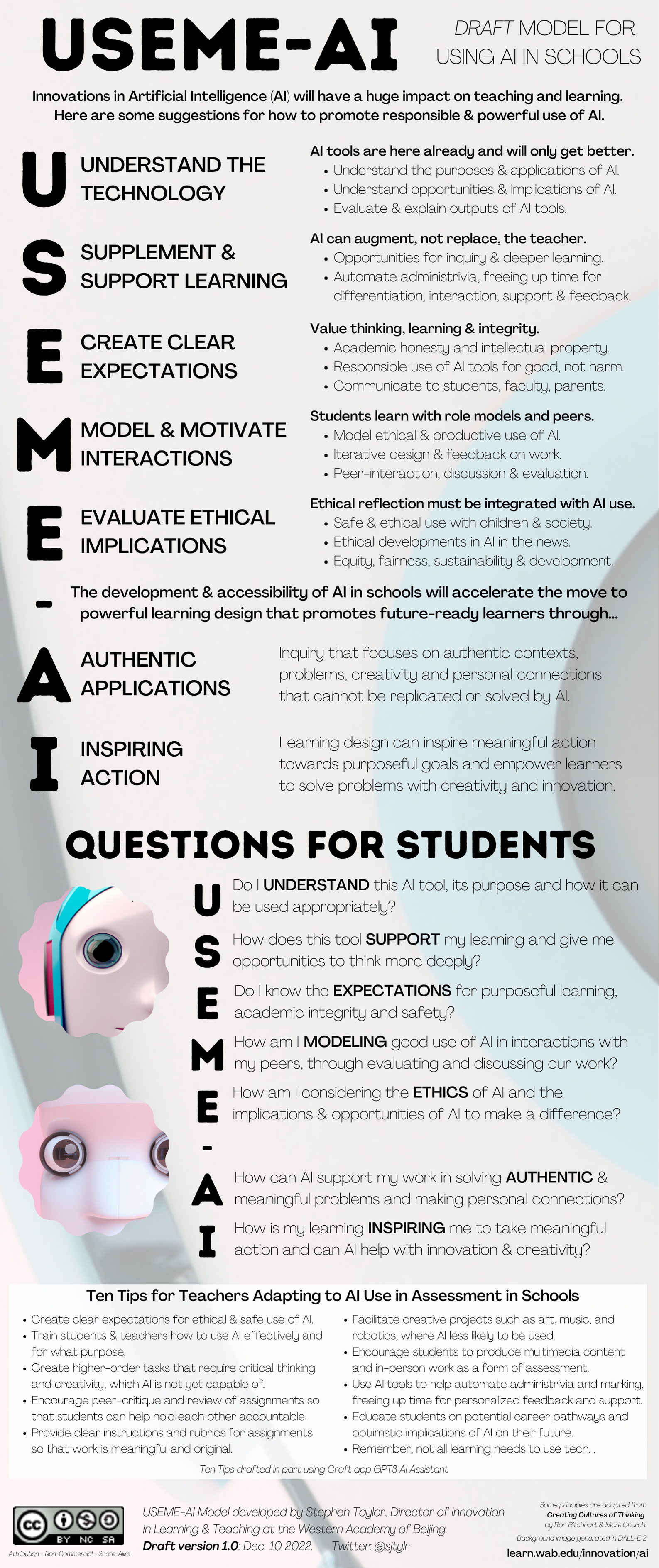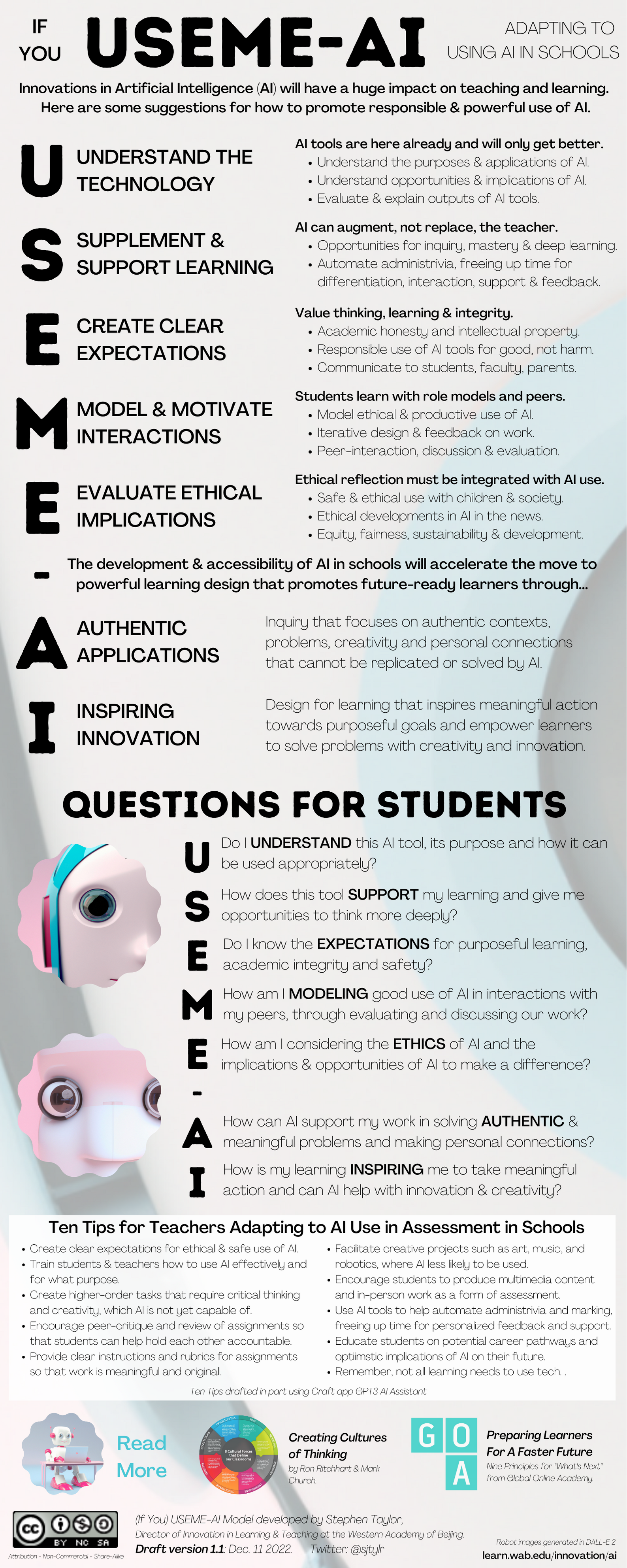 What can schools do to adapt to rapidly developing AI technologies and their potential implications for teaching, learning and assessment? (If You) USEME-AI is a draft structure to support conversations and actions.