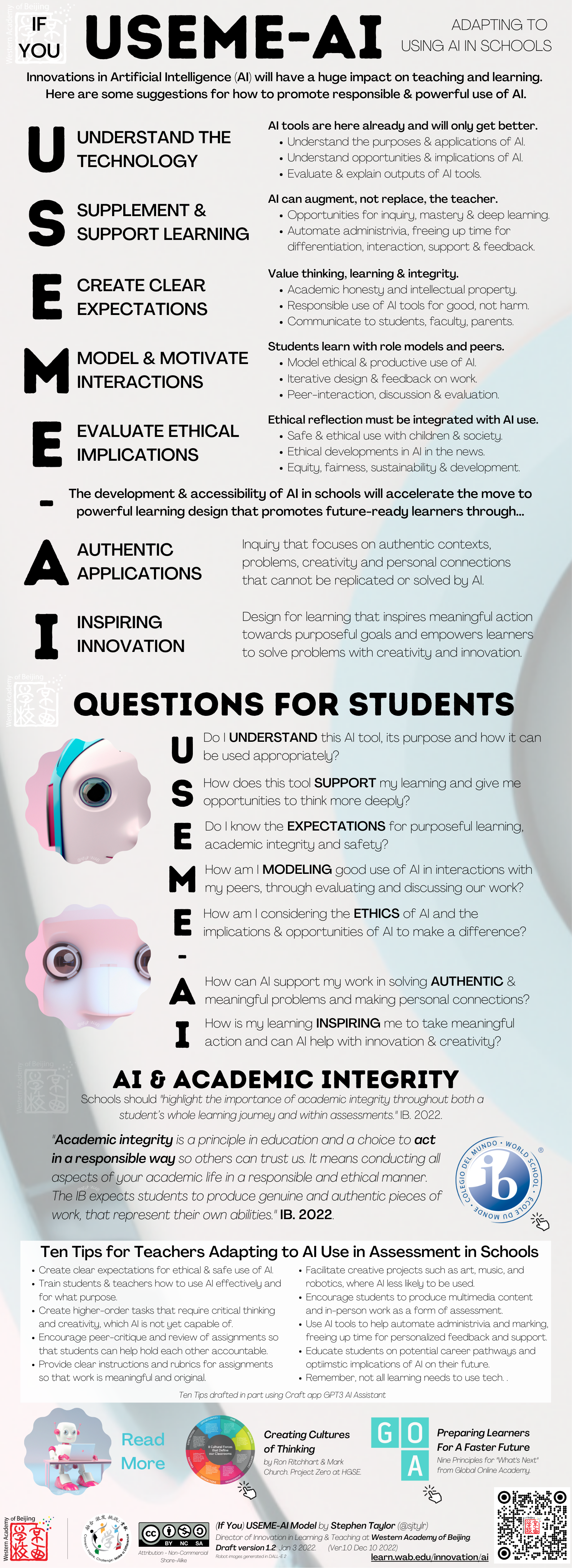 (If You) USEME-AI is licensed under Creative Commons, Non-Commercial, Share-Alike, Attribution. For citation, please use: (If You) USEME-AI model for adapting to AI in schools, by Stephen Taylor at the Western Academy of Beijing.