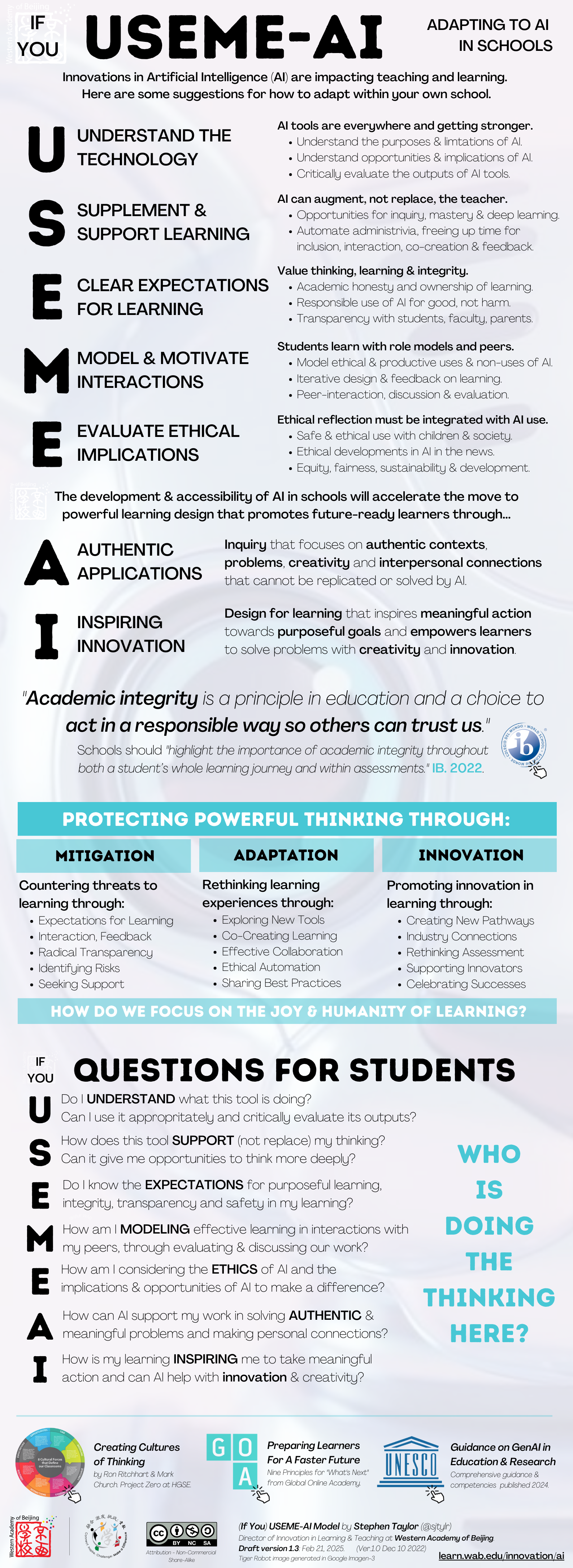 It is still founded on the premise that a school’s learning culture is more powerful than any technological macguffin, that Creating Cultures of Thinking and really understanding learning in our contexts matters, and that for the most part people want to do the right thing. It adds elements of UNESCO’s Guidance on GenAI in Education & Research and tries to promote agency and humanity in learning.