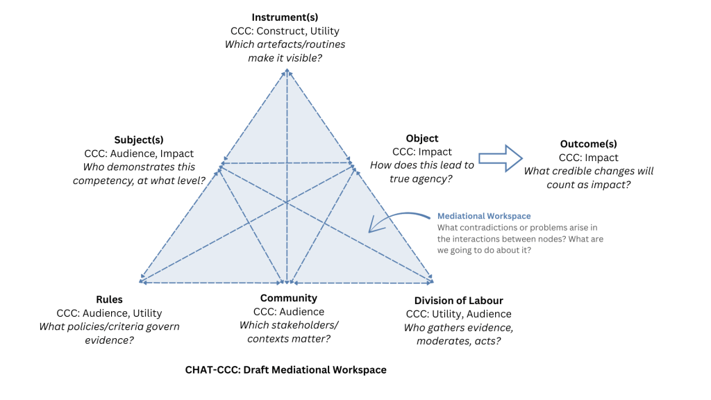CHAT-CCC involves placing the proposed competencies at the heart of the mediational workspace and: