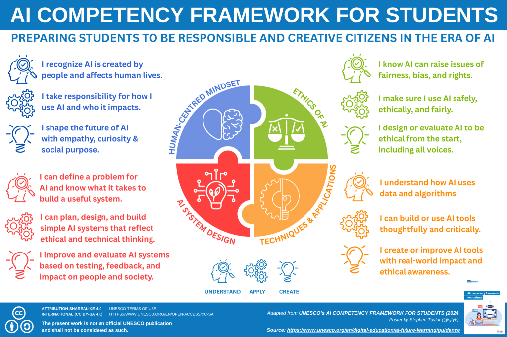 The session and reports were well received by students, worked (thankfully) and generated loads of really useful data for us, particularly for supporting our Grade 9 and 10 students before they make subject choices. Students were thoughtful in their responses, and some came up for after-party chats on AI, skills and the environmental impacts of AI. All of these are great fuel or future workshops. Students can save their findings, and use them as a launch-pad for their own research and skills development as they work towards building portfolios. We will use this rich learning to help shape more experiences and skill development for our students. This was a ton of work to set up and make sure it was functioning correctly, but now it’s dialed in and well worth the effort. It aligns well with our own AI competencies, as well as the competencies and literacies from UNESCO and OECD.