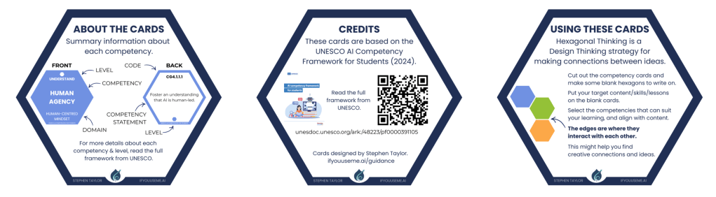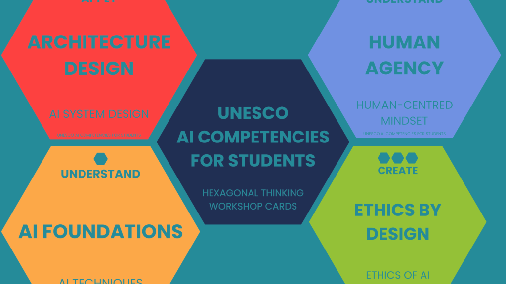 A quick post to share a resource to help work with the UNESCO AI Competencies for Students: Hexagonal Thinking workshop cards.