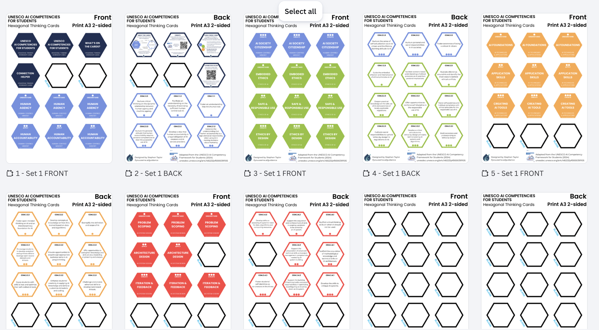A quick post to share a resource to help work with the UNESCO AI Competencies for Students: Hexagonal Thinking workshop cards.